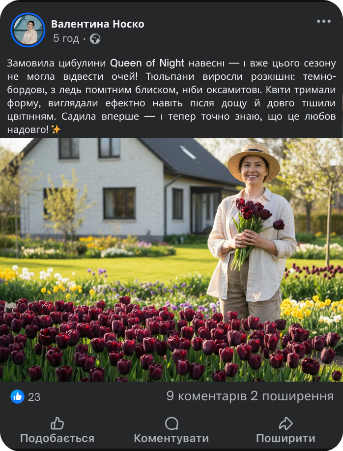 Весна — чудовий шанс додати саду глибини, контрасту й благородної атмосфери разом із тюльпанами Queen of Night.